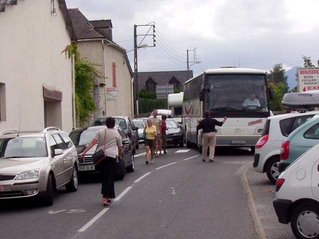 路上駐車のおかげで、大型車は完全に立ち往生。このすぐ先がもうツールのコースになっていて、通行止め中なのです