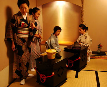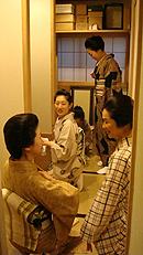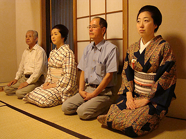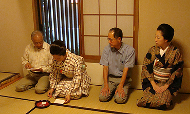 ライオンズクラブの催し物のリハーサルということで、ライオンズクラブのメンバーの方々と一緒に、立礼式(りゅうれいしき)のお茶のお稽古がありました。幸乃恵からは女将の恵さん、芸妓さんはあやめさん、葉月さん、菜乃佳さん、そして小太郎さんが参加。お茶の先生は裏千家の岩澤宗君(そうくん)先生です。編集子にもお茶をご馳走してくれました。ちょっと緊張しましたー。(※写真の掲載は時系列ではありません)
