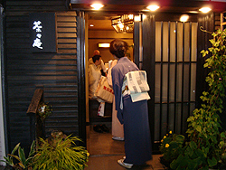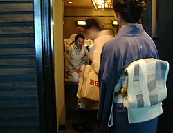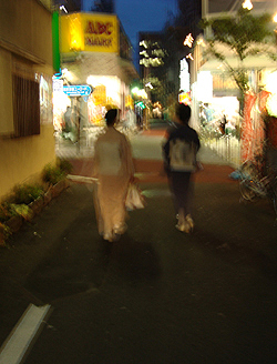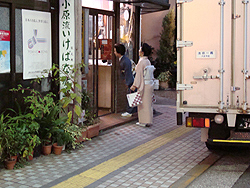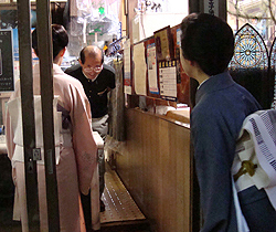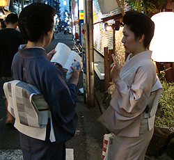 いつの間にか街灯に灯がともり、二人の姿が人並みにまぎれます。一時間弱にわたる挨拶まわりで、最後のお店にたどり着いた時分には、辺りはすっかり暗くなっていました。